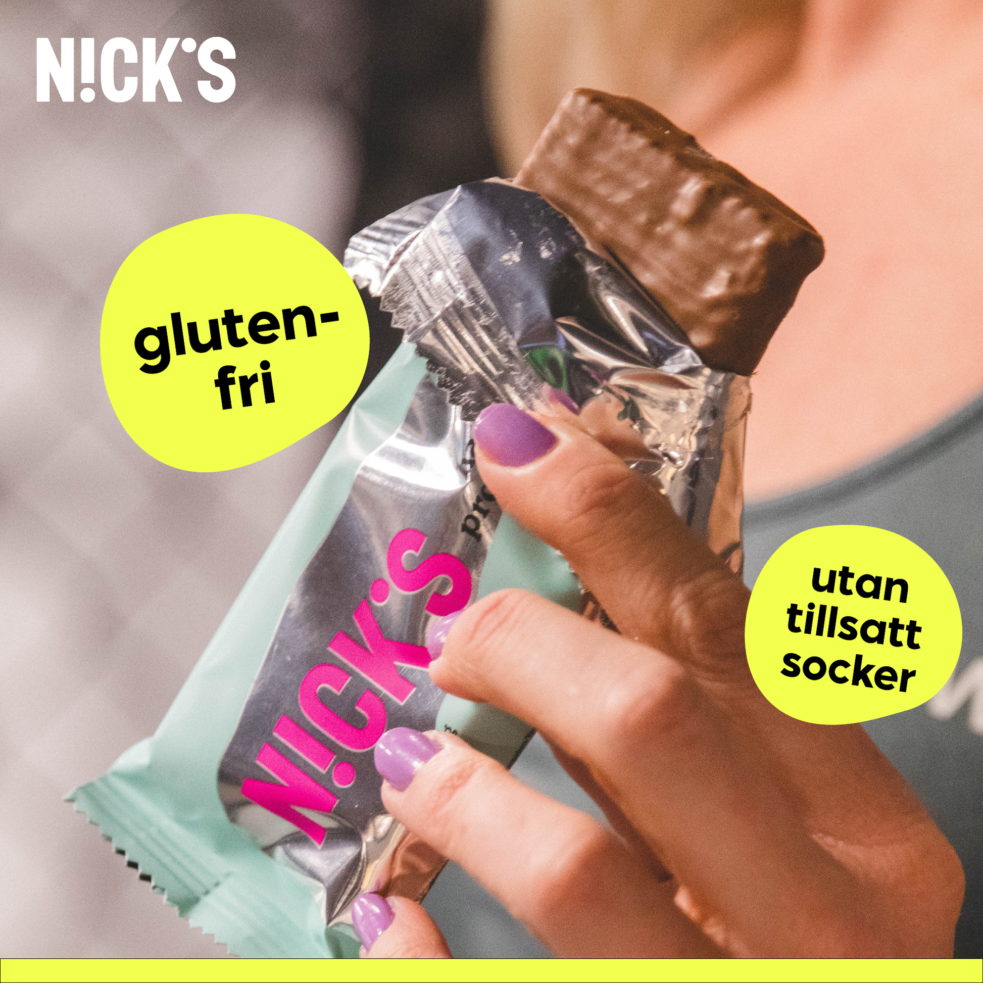 Mjölk protein, mjölk pulver, vegetabilisk olja (shea, kokos), kakaosmör, vegetabilisk olja (raps), mjölmix (majs, potatis, ris), sötningsmedel (erytritol), polydextros (fiber), kakaomassa, kollagenpeptider, inulin, emulgeringsmedel (solroslecitin, soja lecitin), soja fiber, glutenfri havre fiber, vegetabilisk olja (solros), salt, stabiliseringsmedel (xantangummi, guargummi), bakpulver (bikarbonat), sötningsmedel (steviolglykosider, sukralos), vitaminer E, C, B1, B2, B3, B5, B6, B7, B9, B12, naturlig arom.